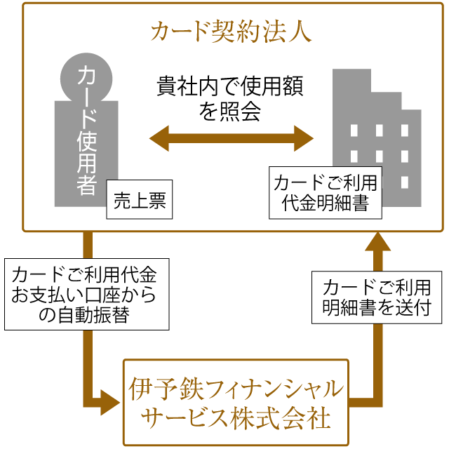 - 弊社からお送りいたします「カード利用代金明細書」にて、カード利用者ごとの月間利用状況が一目で把握できます。経費支出のチェックが容易となり、予算管理にも役立ちます。