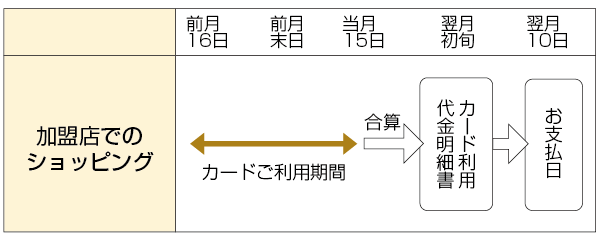 - カード利用からお支払日まで最長56日のお支払猶予期間があります。